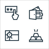 ikony linii płatniczej. zestaw liniowy. zestaw linii wektorowych jakości, takich jak bezpieczna płatność, karta cicha, karta cicha, zakupy online, sejf, sztabki złota, bankomat, karta cicha
