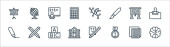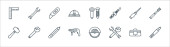 ikony stolarskie. zestaw liniowy. wysokiej jakości zestaw linii wektorowych, takich jak spróbuj kwadrat, dłuto, płaszczyzna drewna, Cutter, kask, szczotka do farby, ołówek, torba