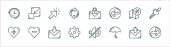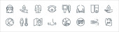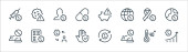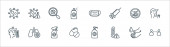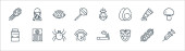 zatrzymać ikony linii wirusów. zestaw liniowy. wysokiej jakości zestaw linii wektorowych, takich jak pociąg, samochód, probówka, szlafrok, nos, mapa, człowiek, serce