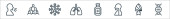 zatrzymać ikony linii wirusów. zestaw liniowy. wysokiej jakości zestaw linii wektorowych, takich jak biegunka, lekarz, szlafrok, probówka, ręka, mapa, powierzchnia