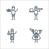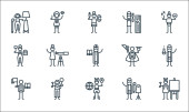 ikony linii sztuki ogólnej. zestaw liniowy. wysokiej jakości zestaw linii wektorowych, takich jak matematyka, jedwab, chemia, mim, antropologia, geografia, malarstwo, moda de, kartografia