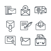 ikony linii papeterii. zestaw liniowy. wysokiej jakości zestaw linii wektorowych, takich jak broszura, koperta, lista kontrolna, koperta, klej, koperta, znaczek pocztowy,