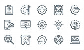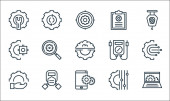 ikony linii inżynierskich. zestaw liniowy. zestaw linii wektorowych jakości, takich jak przekładnia, chip, dźwig, schowek, monitor, inżynieria, monitorowanie, chip, wyszukiwanie