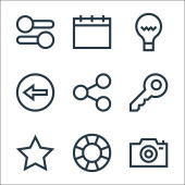ikony linii niezbędne dla sieci web. zestaw liniowy. wysokiej jakości zestaw linii wektorowych, takich jak zakaz, kamera, udostępnianie