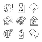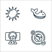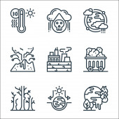 ikony linii zmian klimatycznych. zestaw liniowy. wysokiej jakości zestaw linii wektorowych, takich jak pogoda, bez plastikowych toreb, ziemia, rafa koralowa, żarówka, słońce, niedźwiedź polarny, koronawirus