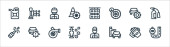wznowić pracę ikony linii. zestaw liniowy. zestaw linii wektorowych jakości, takich jak analiza danych, planowanie, drukarka, edukacja, cv, umiejętności, ścieżka, profil online