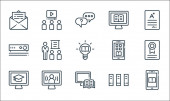 wznowić pracę ikony linii. zestaw liniowy. zestaw linii wektorowych jakości, takich jak słowa kluczowe, teczka, umiejętności, diagram, książka, lokalizacja, firma, marketing mobilny, jak