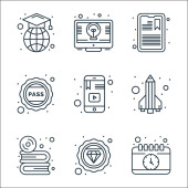 ikony linii nauki online. zestaw liniowy. wysokiej jakości zestaw linii wektorowych, takich jak wysokiej rozdzielczości, trofeum, uczenie się online, komputer, ebook, plik tekstowy, nauka online, ukończenie szkoły