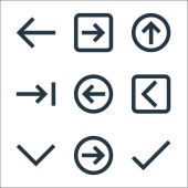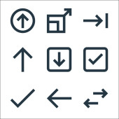 ikony linii strzałek. zestaw liniowy. jakość wektor linii zestaw takich jak dół w lewo, strzałka w górę, w lewo, minus, z powrotem, więcej, góra w lewo, w prawo