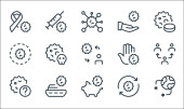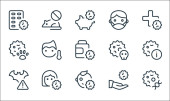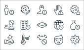 ikony linii koronawirusów. zestaw liniowy. wysokiej jakości zestaw linii wektorowych, takich jak Celsjusza, mycie rąk, test kału, dziecko, nuklearne, zaraźliwe, dżuma, opieka zdrowotna, leki