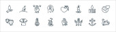 ikony linii ogrodniczej. zestaw liniowy. wysokiej jakości zestaw linii wektorowych, takich jak lampa, wiszący garnek, łopaty, nawóz, zraszacz, łopata, nożyczki, dżdżownica