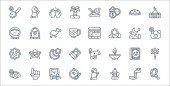 ikony linii ogrodniczej. zestaw liniowy. wysokiej jakości zestaw linii wektorowych, takich jak fontanna, łopata, biedronka, ogrodnik, nawóz, grzyb, gnome, wodospad, kwiat