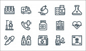 ikony linii medycyny. zestaw liniowy. wysokiej jakości zestaw linii wektorowych, takich jak ręka, syrop, probówki, tabletki, tabletki, zastrzyk, antybiotyk, zestaw medyczny