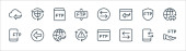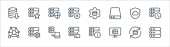 ikony linii serwerów biurowych. zestaw liniowy. zestaw linii wektorowych jakości, takich jak networking, udostępnianie danych, błąd, serwer, networking, połączenie, serwer, ruch