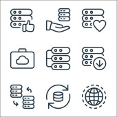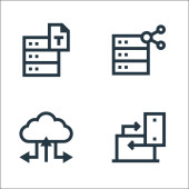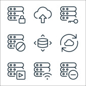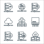 ikony linii serwerów biurowych. zestaw liniowy. jakość wektor linii zestaw takich jak zweryfikowane, pobierz, błąd, urządzenie pamięci masowej, zapisać, sha folder, serwer, udostępnić