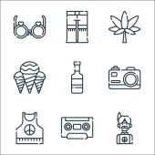 ikony linii reggae. zestaw liniowy. wysokiej jakości zestaw linii wektorowych, takich jak gitara akustyczna, reggae, kaseta, rura, zioło, bongo, van, Afryka