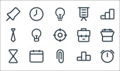 ikony linii biznesowych. zestaw liniowy. zestaw linii wektorowych jakości, takich jak remis, ranking, dołączyć, torba, alarm, alarm, drabina, kalendarz, dokument