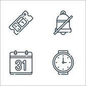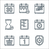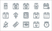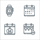 ikony kalendarza i linii daty. zestaw liniowy. wysokiej jakości zestaw linii wektorowych, takich jak dzwonek, kalendarz, smartwatch, chronometr, kalendarz, dzień ślubu, wiosna, przypomnienie