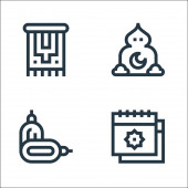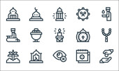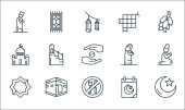 ikony linii Ramadan. zestaw liniowy. wysokiej jakości zestaw linii wektorowych, takich jak fez, muzułmanin, dywan, zakat, Allah, isha, armata, qibla, muzułmanin