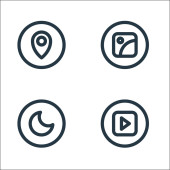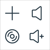 podstawowe ikony linii ui. zestaw liniowy. zestaw linii wektorowych jakości, takich jak dodawanie, kamera, odtwarzanie, więcej, udostępnianie, głośność, blokada, jasność