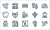 ikony linii zdrowia. zestaw liniowy. wysokiej jakości zestaw linii wektorowych, takich jak woda, sen, dokumentacja medyczna, smartwatch, raport medyczny, kardiogram, wzrost, witamina c, szczoteczka do zębów