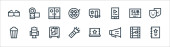 ikony miejskiej linii życia. zestaw liniowy. wysokiej jakości zestaw linii wektorowych, takich jak bar, ławka, hydrant przeciwpożarowy, budynek, schody, gazeta, zwierzę domowe, w dół