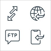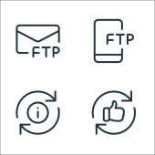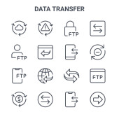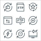 ikony linii przesyłu danych. zestaw liniowy. zestaw linii wektorowych jakości, takich jak kolejka, transfer, dobre opinie, ftp, ftp, baza danych, sprawdzone, usunąć