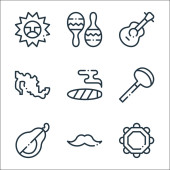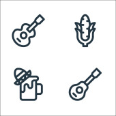 ikony linii instrumentów muzycznych. zestaw liniowy. wysokiej jakości zestaw linii wektorowych, takich jak banjo, werbel, tamburyn, mikrofon, fortepian, mandolina, akordeon, klawiatura