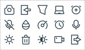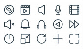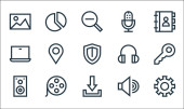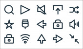 ikony linii interfejsu użytkownika. zestaw liniowy. jakość wektor linii zestaw, takich jak jasność, minus, głośność, przewijanie, obraz, dom, zamek, zminimalizować, wyszukiwania