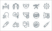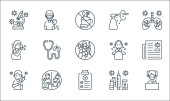 ikony linii usług medycznych. zestaw liniowy. wysokiej jakości zestaw linii wektorowych, takich jak okulistyka, złamana noga, dermatologia, mikroskop, ciśnieniomierz, ubezpieczenie zdrowotne, kardiologia, neurologia, opieka stomatologiczna