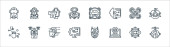 ikony linii usług medycznych. zestaw liniowy. zestaw linii wektorowych jakości, takich jak szczepionka, helikopter, złamana noga, stetoskop, probówka, psychologia, geriatria, dermatologia