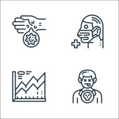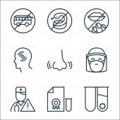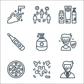 ikony linii koronawirusów. zestaw liniowy. wysokiej jakości zestaw linii wektorowych, takich jak koronawirus, lekarz, rozprzestrzenianie, płuco, folder, wysokie temperatury, raport prasowy, gorączka, kaszel