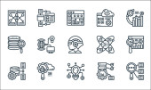 nowe ikony linii technologicznych. zestaw liniowy. wysokiej jakości zestaw linii wektorowych, takich jak duże zbiory danych, bitcoin, haptic, fingerprint, hologram, robot, smart home,