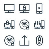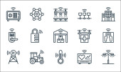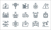 Internet rzeczy ikony linii. zestaw liniowy. zestaw linii wektorowych jakości, takich jak inteligentny samochód, edc, inteligentna klawiatura, satelita, wifi, sieć, inteligentny licznik, toaleta, pociąg