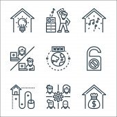 ikony linii domowej. zestaw liniowy. zestaw linii wektorowych jakości, takich jak zespoły, aktualizacja, oś czasu, biuro domowe, pobyt w domu, praca, pracownicy, pobyt w