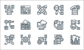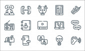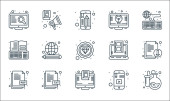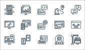 ikony linii doświadczenia użytkownika. zestaw liniowy. zestaw linii wektorowych jakości, takich jak testowanie, ekran dotykowy, link, lista kontrolna, analiza, multimedia, strategia treści, zadowolenie, użyteczność