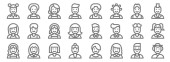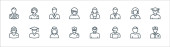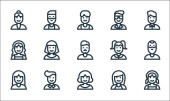 ikony zawodów. zestaw liniowy. zestaw linii wektorowych jakości, takich jak prawnik, pracownik, lekarz, rolnik, biznesmen, profesor, lekarz, taksówkarz
