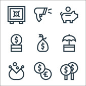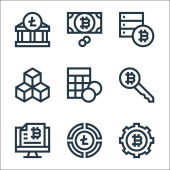 ikony linii kryptowaluta. zestaw liniowy. wysokiej jakości zestaw linii wektorowych, takich jak torba na zakupy, kontrakt, torba pieniędzy, bitcoin, bitcoin, bitcoin, wymiana