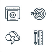 ikony linii seo. zestaw liniowy. zestaw linii wektorowych jakości, takich jak czat, prędkościomierz, link