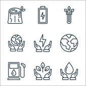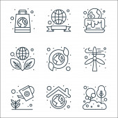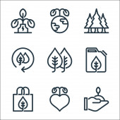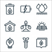 ikony linii ekologicznej. zestaw liniowy. wysokiej jakości zestaw linii wektorowych, takich jak recykling, worek recykling, liść roślin, energia, panele słoneczne, probówka, dom