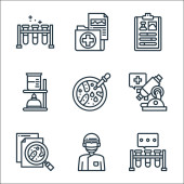 ikony linii laboratoryjnych i naukowych. zestaw liniowy. zestaw linii wektorowych jakości, takich jak lekarz, odpady, eksperymenty