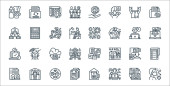 ikony linii kryzysu gospodarczego. zestaw liniowy. zestaw linii wektorowych jakości, takich jak płynność, bank, inwestor, finanse, eksport, rynki wschodzące, nieruchomości, zadłużenie, przedsiębiorca