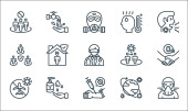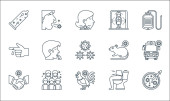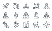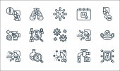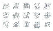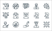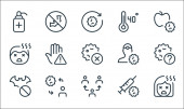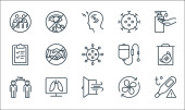 ikony linii koronawirusów. zestaw liniowy. wysokiej jakości zestaw linii wektorowych, takich jak: brak lotu, zapalenie płuc, pandemia, gorączka, pobyt w domu, dezynfekcja rąk, pielęgniarka, zachować dystans, kaszel