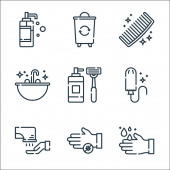 Zdjęcie "myć ręce ikony linii. zestaw liniowy. wysokiej jakości zestaw linii wektorowych, takich jak brud, dezynfektor rąk, mydło, szpital, bibuła, dezynfektor rąk, raport medyczny, pranie ręczne, spray czyszczący" może być wykorzystywane do celów osobistych i komercyjnych zgodnie z warunkami zakupionej licencji Royalty-free. Obraz jest dostępny do pobrania w jakości wysokiej rozdzielczości do 5760x3840.