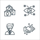 ikony linii koronawirusów. zestaw liniowy. zestaw linii wektorowych jakości, takich jak wentylacja, termometr, gorączka, nietoperz, statystyki, zagrożenie, kaszel, gorączka