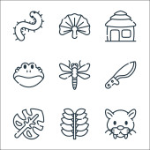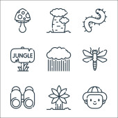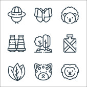 ikony linii ogrodniczej. zestaw liniowy. wysokiej jakości zestaw linii wektorowych, takich jak narzędzie ogrodowe, pniak, doniczka, bonsai, roślina, termit, żółw, wiewiórka