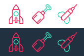 ikony linii interfejsu użytkownika. zestaw liniowy. wysokiej jakości wektor linii zestaw, takich jak kliknij, rakieta, pin push