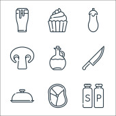 ikony linii żywności. zestaw liniowy. wysokiej jakości zestaw linii wektorowych, takich jak lody, chleb, hot dog, szkło, ser, łyżka, sztućce, piwo