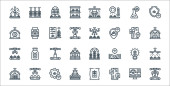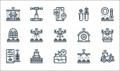ikony inteligentnych linii rolnych. zestaw liniowy. wysokiej jakości zestaw linii wektorowych, takich jak inteligentne gospodarstwo, inteligentny dron, gospodarstwo, zakład, ciągnik, zbiornik wody, wiatrak, mleko, przechowywanie