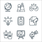 Zdjęcie "ikony linii aktywności. zestaw liniowy. wysokiej jakości zestaw linii wektorowych, takich jak karaoke, fajerwerki, torba na zakupy, flaga wyścigowa, płótno farby, bębny, gra w szachy, konsola do gier" może być wykorzystywane do celów osobistych i komercyjnych zgodnie z warunkami zakupionej licencji Royalty-free. Obraz jest dostępny do pobrania w jakości wysokiej rozdzielczości do 5760x3840.